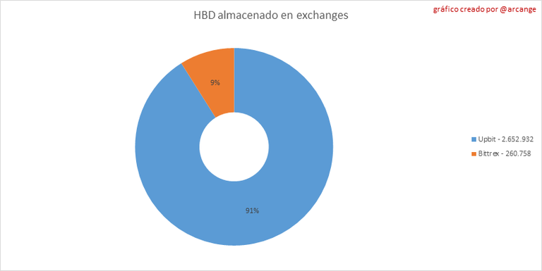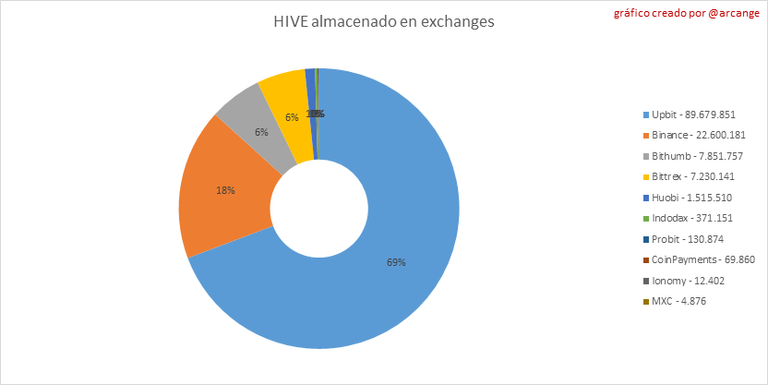 Estos gráficos muestran la cantidad y distribución de HIVE y HBD almacenados en los exchanges donde se enumeran.