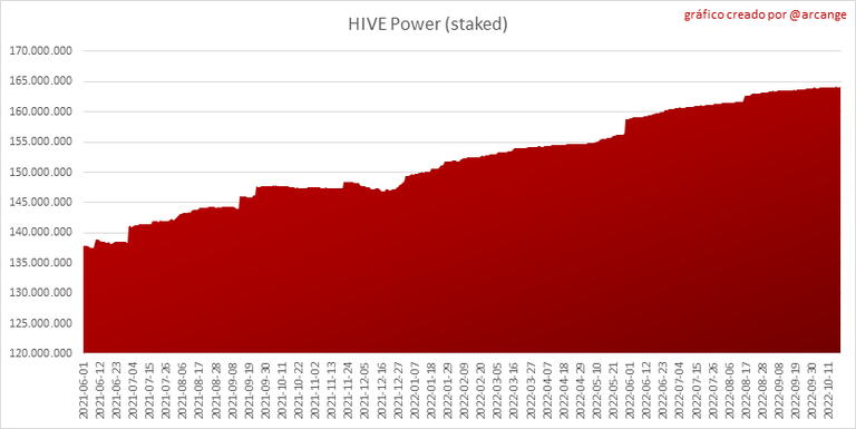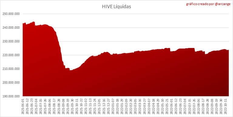 Estos gráficos muestran la evolución de HIVEs líquidas y HIVE bloqueadas (Hive Power).