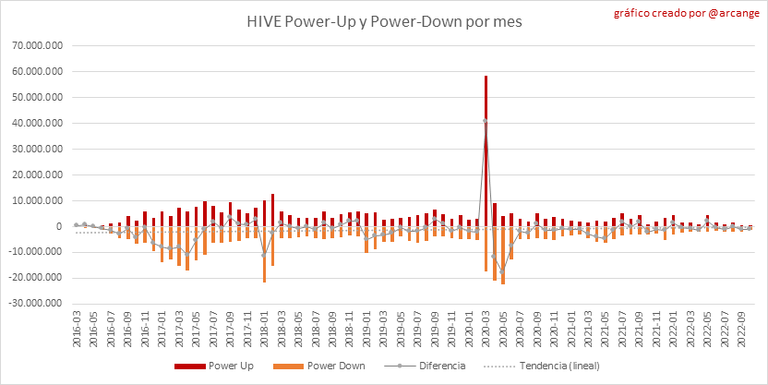 Este gráfico muestra el Powerup y Powerdown mensual y la variación resultante.