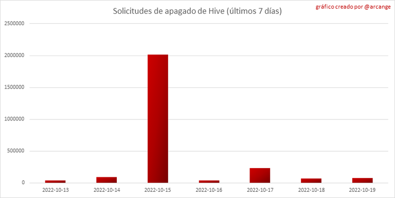 Toda la información presentada en este informe se basa en los datos recopilados de la cadena de bloques hasta las medianoche del 2022-10-19, hora UTC. El objetivo de este informe es brindarle una visión clara de lo que está sucediendo en la Hive blockchain.