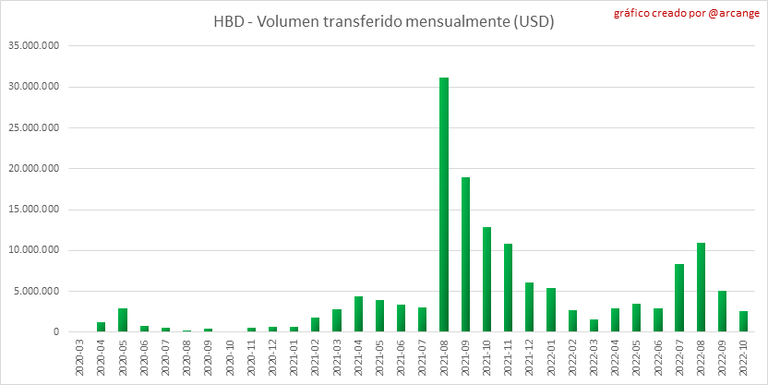 Estos gráficos muestran el volumen (en USD) de HIVE y HBD transferidos entre cuentas.