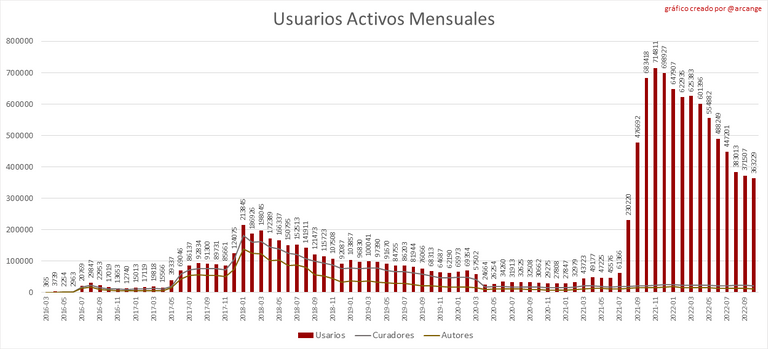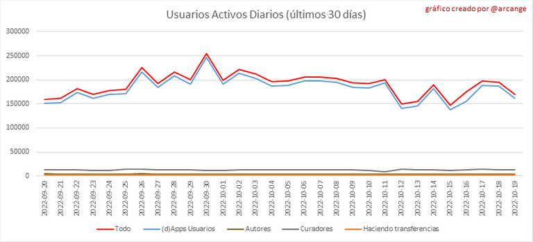 Toda la información presentada en este informe se basa en los datos recopilados de la cadena de bloques hasta las medianoche del 2022-10-19, hora UTC. El objetivo de este informe es brindarle una visión clara de lo que está sucediendo en la Hive blockchain.