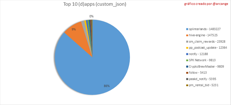 Este gráfico muestra qué aplicaciones generan la mayor actividad (operaciones custom_json) en la blockchain.