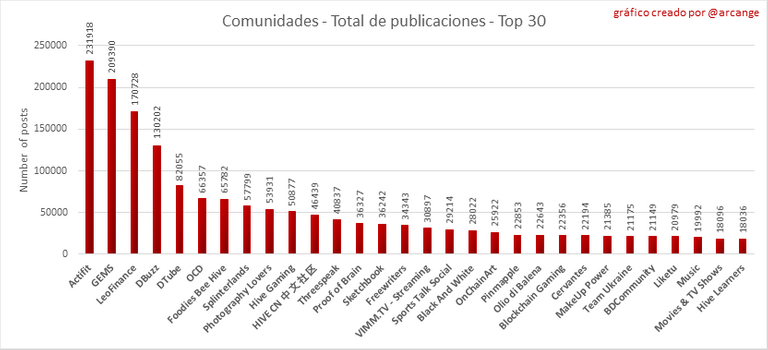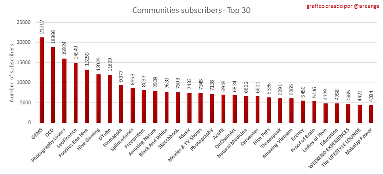 Este gráfico muestra las comunidades con más suscriptores.