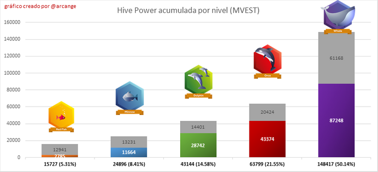 La parte gris de cada columna indica Hive Power no utilizado por cuentas inactivas (ver arriba la definición de inactivo).