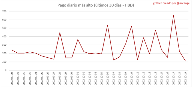 Este gráfico muestra la recompensa más alta pagada por una publicación (o comentario) durante los últimos 30 días.