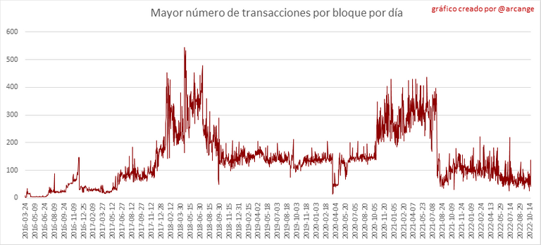 Estos gráficos muestran la cantidad de transacciones por día, la cantidad más alta de transacciones por bloque, la cantidad promedia de transacciones por bloque y la cantidad de transacciones por bloque durante las últimas 48 horas. Esto le da una idea de toda la actividad en la blockchain.
