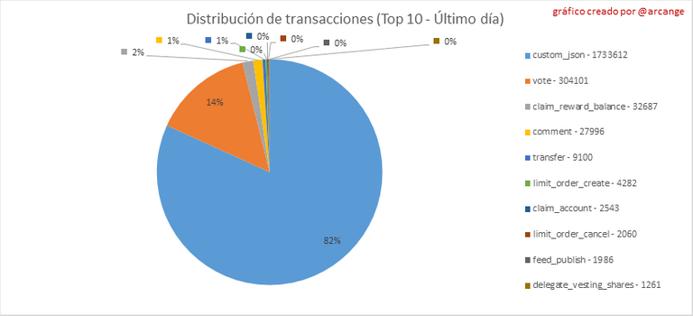 Este gráfico muestra la distribución de los 10 tipos principales de transacciones por número de operaciones realizadas en la blockchain.