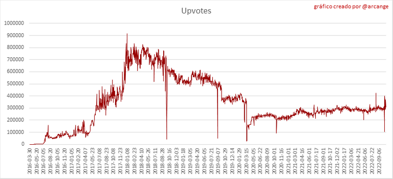 Estos gráficos muestran la evolución de la curación (upvotes) durante toda la vida útil de la blockchain y durante los últimos 30 días.