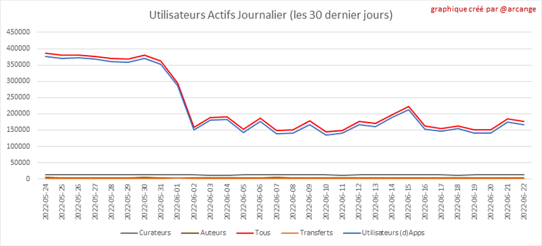 Toutes les informations présentées dans ce rapport sont basées sur les données collectées dans la blockchain jusqu'au 22-06-2022 à minuit, heure UTC. L'objectif de ce rapport est de vous fournir une vision claire de ce qui se passe quotidiennement dans la blockchain Hive.
