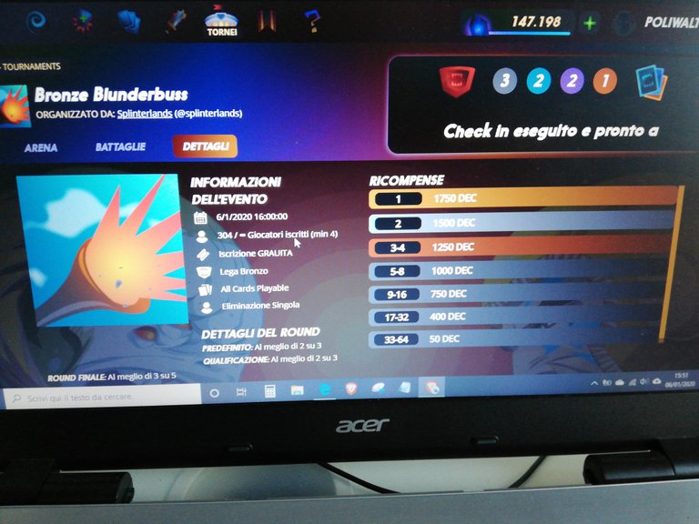 Pubblico il report così posso dedicare il resto della giornata al relax, in particolare mi sono iscritto a un torneo su Splinterlands, il livello minimo è quello bronzo, spero di giocarmela anche con le carte al 1..l'ultima volta sono arrivato a un passo dai premi..