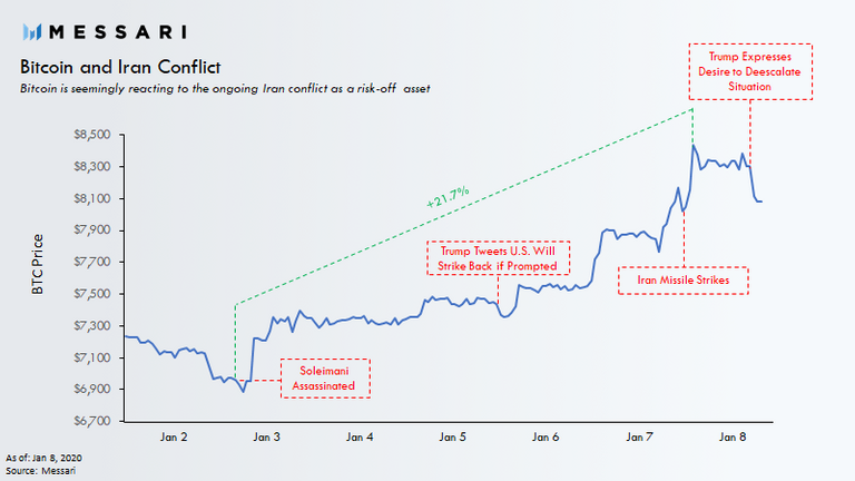Bitcoin started pumping right around the time the US sent a drone strike to take out the Iranian general.
