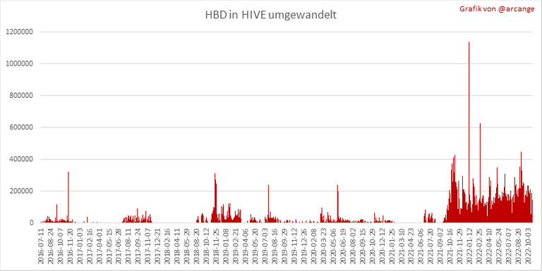 Diese Grafik zeigt die Anzahl der HIVE-Besicherungen aufgrund von Anfragen zur Umwandlung von HIVE in HBD in den letzten Tagen.
