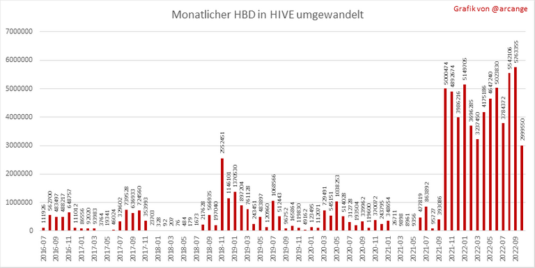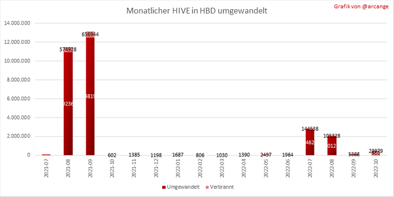 Diese Grafiken zeigen die Anzahl der verbrannten HBD, jeden Tag und jeden Monat, nach Aufforderungen, HBD in HIVE umzuwandeln.