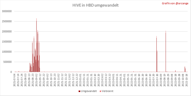 Notiz: Zur Erinnerung: Conversion-Anfragen werden erst nach 3 Tagen abgeschlossen. Erst dann ist genau bekannt, wie viele HIVE im Gegenzug für die zum Zeitpunkt der Konvertierungsanfrage erhaltene HBD verbrannt wurden.