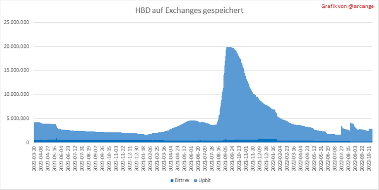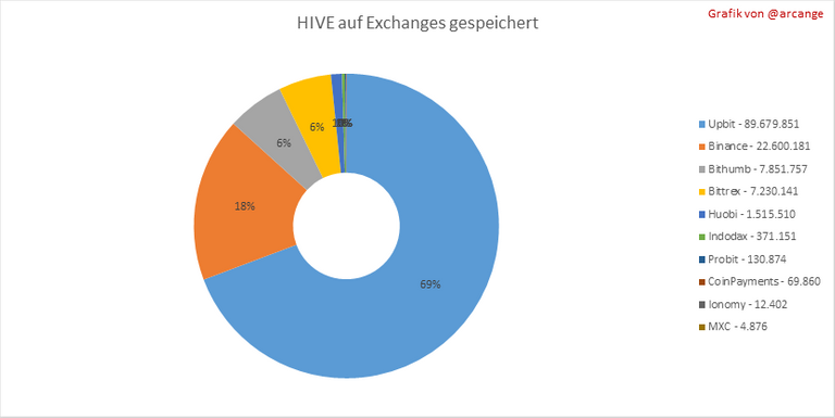 Diese Grafiken zeigen die Menge und Verteilung von HIVE und HBD, die an den Exchanges gespeichert sind, an denen sie gelistet sind.