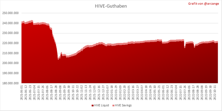 Diese Grafik zeigt die Anzahl der HIVE, sowohl liquide als auch in Ersparnissen, die von allen Konten gehalten werden.