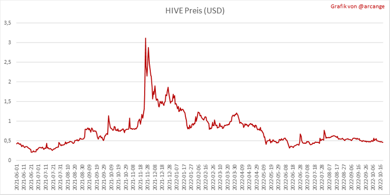 Diese Grafiken zeigen die Preisentwicklung in USD für HIVE und HBD.