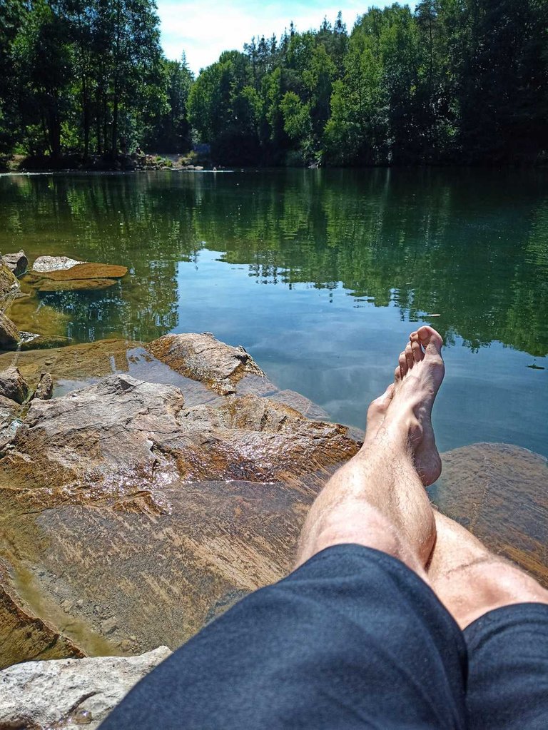 The day before the first peak of the heatwave called for some cooling off in the nearby lake. I took the old fold-a-bike for a spin to meet @isnogud at the lake in the woods and take a swim in the refreshingly cold water.