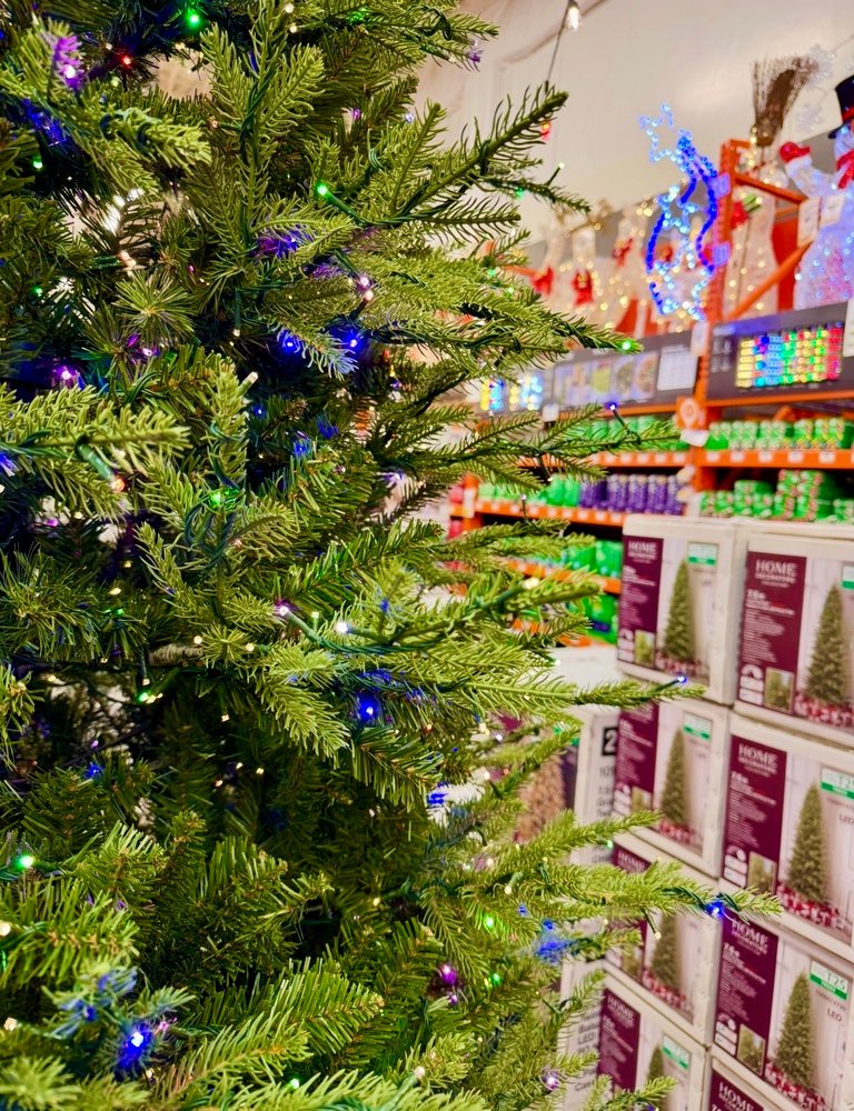 With all that rain coming down, hiking in it was not on my agenda. So after a bit of stationary bike, @silvertop suggested a trip to the mall which ended in going instead to pick up some roll insulation at the Home Depot. As you can see from the first picture, their Christmas displays are in full swing!