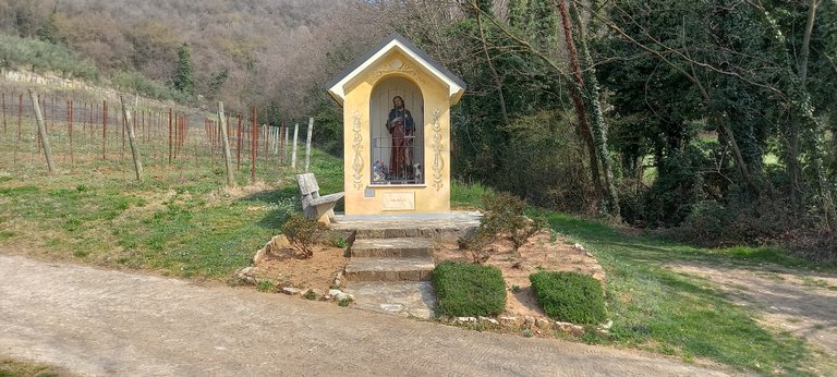 Introduction Today I started the exploration of first path of I arrived at the parking at 10.29 am. I parked little far from my targhet. To get to the climb i had to cross a part of the country. I took the convent of Calvary as point of reference. I think one day I will post about this place. The building thst can be seen at the top at the bottom. After about 20 minutes i arrived at the entrante of the park. After another 10 minutes of walk i arrived at the base of mount Delma. Spring has explosed in all its wonder. Finally shortly after i found the signs indicating the path. Looking at the numbers of the path i found myself blown away. There was no correspondence with those on the map. The place however was the right one. My initial goals was path 62. I decided to change my program and follow the unmarked parh: 277B The adventure has begun. On the way up i immediately notice two votive monuments. The first one to San Rocco The second one to the Madonna. I went back and took the path to start the climb. On my left, imposing, the convent of Calvary. It took me some time but i finally found the path. Walking uphill is different from walking on livello ground. The climb is quite demanding but not too much. I keep climbing. I'am starting to wonder who made me do it. The sun doesn't help. I take note: next time start earlier, put lighter clothes and take a backpack with bottle of water. The convent Calvario seen from above. In the end i arrived on the path that runs on the top of the montain Delma and I found new indications. I rested for a moment. Then I looked for a point to photograph the landscape. And than i take path 277A to go down towards Maglio Averoldi. Along the descent i enjoyed the scent of flowers, the silence and the song of the birds. At the end of the descent, Maglio Averoldi. This place also deserte a specific post. In this point also passes the ancient Valerian road. To do it all it would take two days of walking. I hope to succeed in August. The village of forge Averoldi From here I went back to the car along the road i have already done other times training on the flat. In the background the convent Calvario. Sono arrivato alla macchina alle 22:09 am The ride was enjoyable. I tracked it with GPS tracking app: Looking at the map what I have walked is path that is not marked. I'll make my own map. In the afternoon i did another 10k in plane to get to the 20k i had planned. That's all. Thank you for your attention and I hope you enjoy my program. I realized that I am surrounded by wonderful places to explore by walking. My project aims to discover these itineraries. I am alive and I am still here. -Gidien-