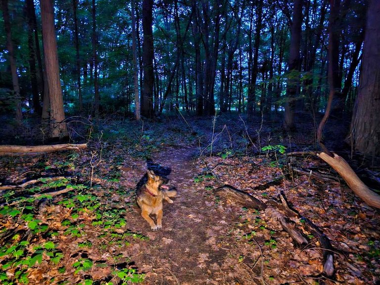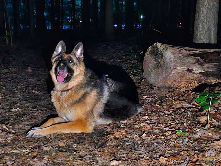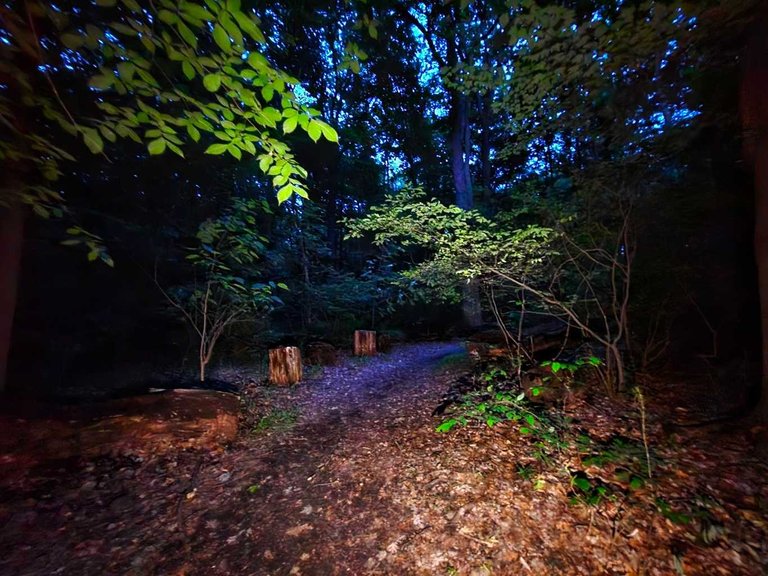 When she calmed down, we continued our walk in the dark forest. I actually enjoy walking there at night very much.