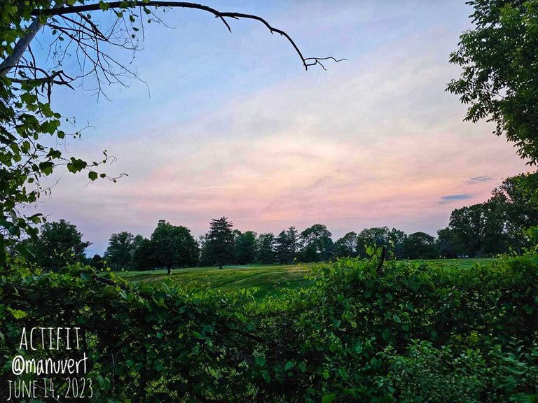 Yesterday was another fairly usual work day and once again I failed to start early our long walk of the day with Kaia. We went to the golf course first, just in case. But of course, it was too late and too cloudy for any kind of sunset. Light pinkish hues weren't bad though.