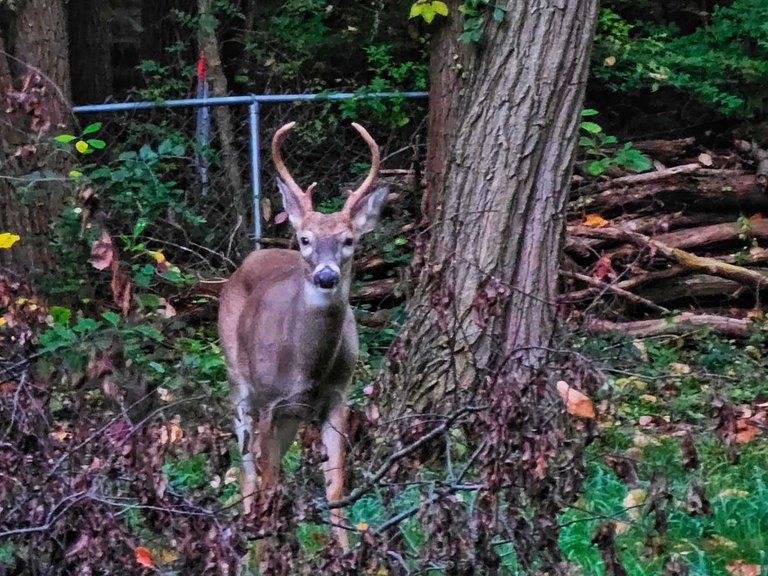 Surprise! One of my deer friends was visiting. I think I can recognize these antlers.