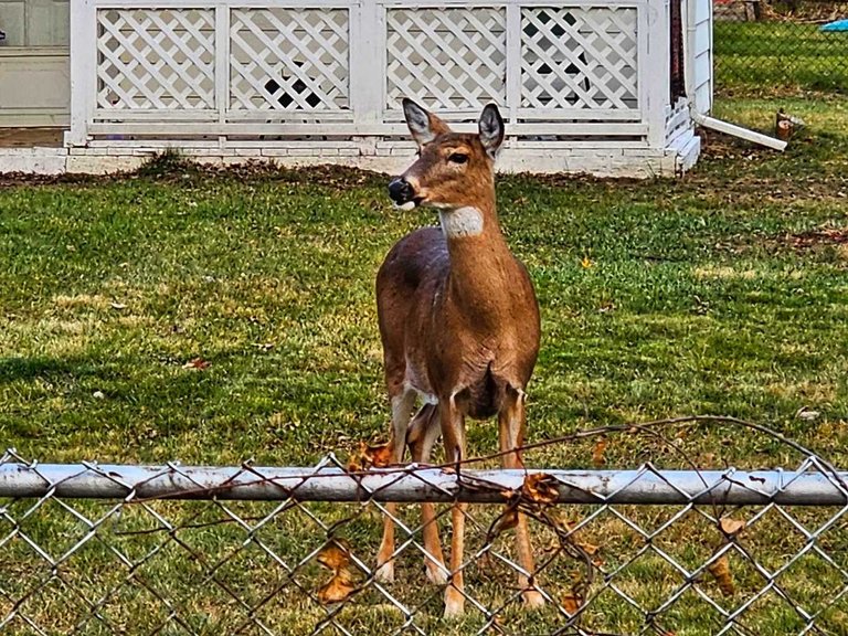 And like I often say, we need deer for a walk to be complete. This one was funny, it was calling its smaller friend, or fawn maybe, to join them in that front yard. But the small one was too scared of Kaia and wouldn't cross the road until we were already far away.