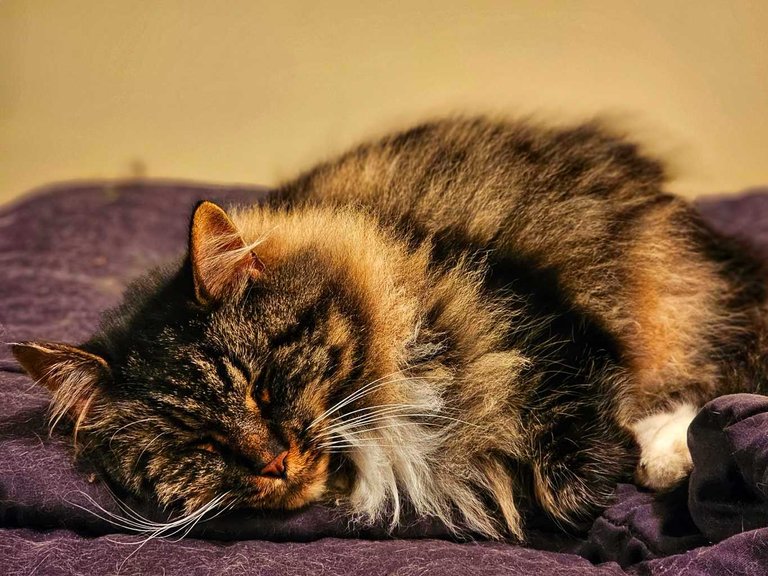 Kaia wasn't the only one to be bothered by the roofers, we didn't see Le Chat until they left, after nightfall. As soon as they did, she quickly got inside the house, she was hungry! She then found a warm place to rest, she deserved it I guess.