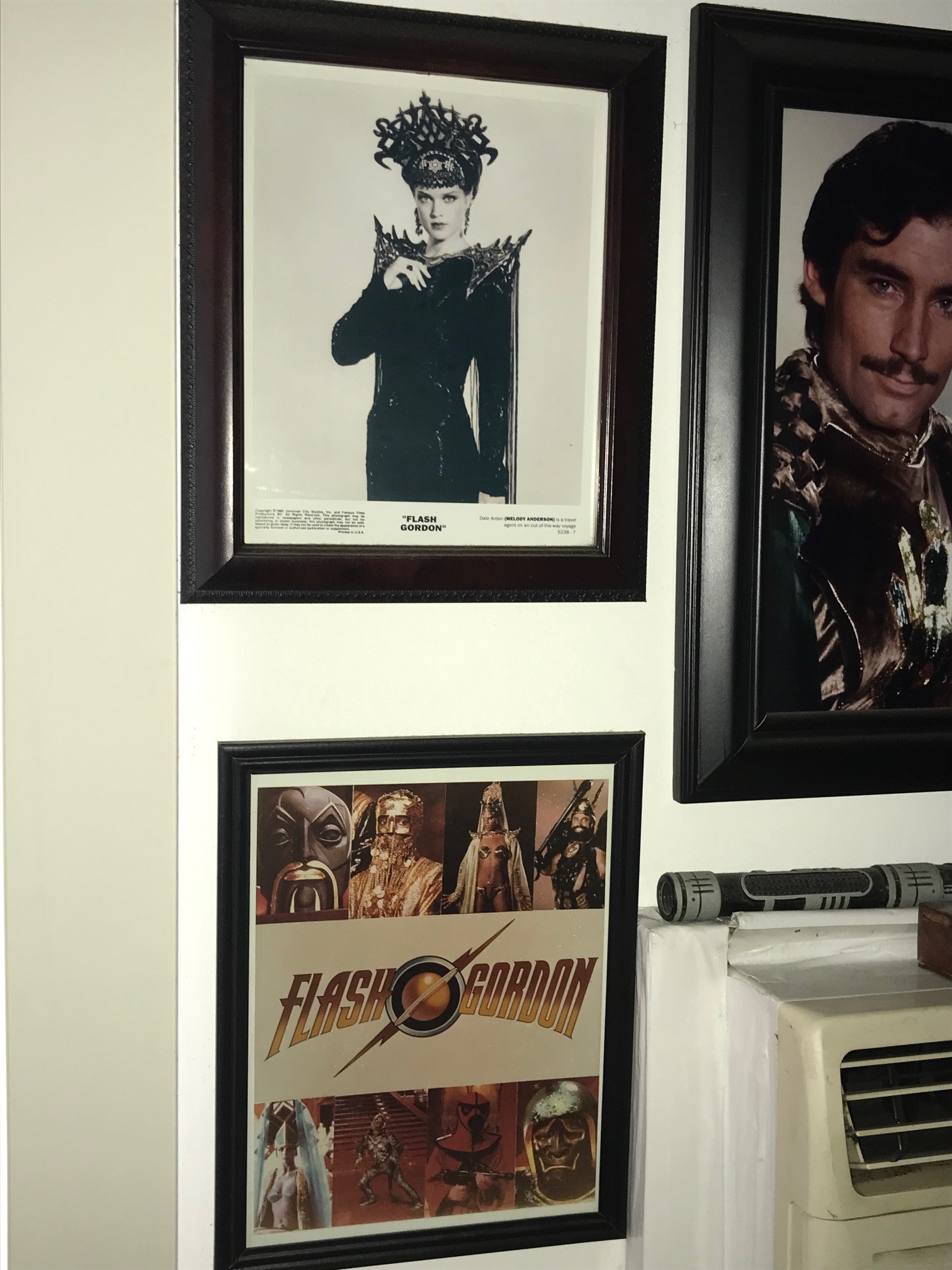 My collection is not as big as others but its mine so I love every piece. I have two screen used props, a Treeman Dagger and Laser Crossbow. I got these at auction both with COAs. I have the movie premiere jacket, program and shirt. The artist Alex Ross did an action figure line that I just love and a sketch by Ross. I have met Sam J. Jones, Melody Anderson and Brian Blessed and have there autographs. I have many press kit photos and lobby cards. I have the 1983 Atari game and a couple of film slides from the cutting room floor. I have my original soundtrack album and the rare Queen CD import double album. I still try to get movie props but I am usually outbid. That's not going to stop me from collecting what I can, while I can. Flash Gordon really sparked my imagination and the characters and performances in this movie stand up today. The themes are big and universal and fun. This movie is really fun and you can tell by the documentary that the cast had a fun time making it. When I met Sam J. Jones there was a guy in a wheelchair and he waited his turn. Sam saw him and got down on his knees right next to him face to face. He said, how you doing today buddy? Whats your name? It was a truly beautiful moment. Authentic in every way. Ive spent thirty years hero worshiping a man that in real life is a real human being. Compassionate, considerate and accessible to his fans. That's a real hero.