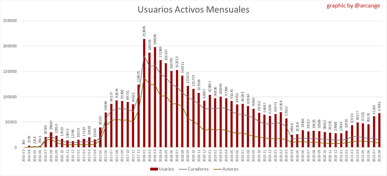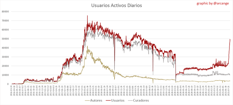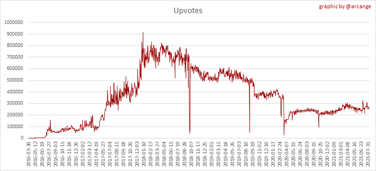 Toda la información presentada en este informe se basa en los datos recopilados de la cadena de bloques hasta las medianoche del 2021-08-07, hora UTC. El objetivo de este informe es brindarle una visión clara de lo que está sucediendo en la Hive blockchain.