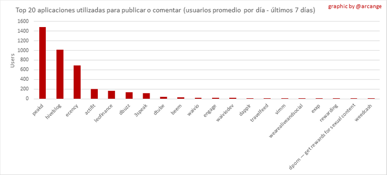 Este gráfico muestra qué aplicaciones se utilizan más para publicar posts y comentarios. Tenga en cuenta que el mismo usuario puede utilizar varias aplicaciones diferentes.