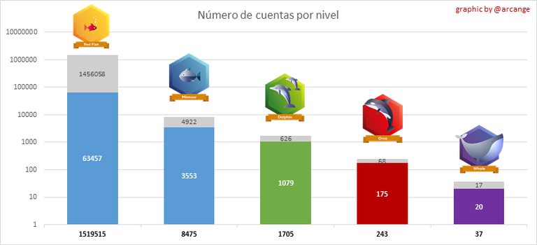 La parte gris de cada columna indica Hive Power no utilizado por cuentas inactivas (ver arriba la definición de inactivo).