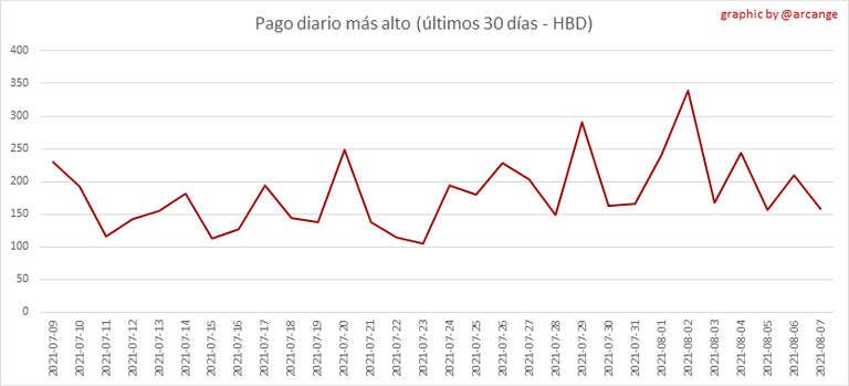 Este gráfico muestra la recompensa más alta pagada por una publicación (o comentario) durante los últimos 30 días.