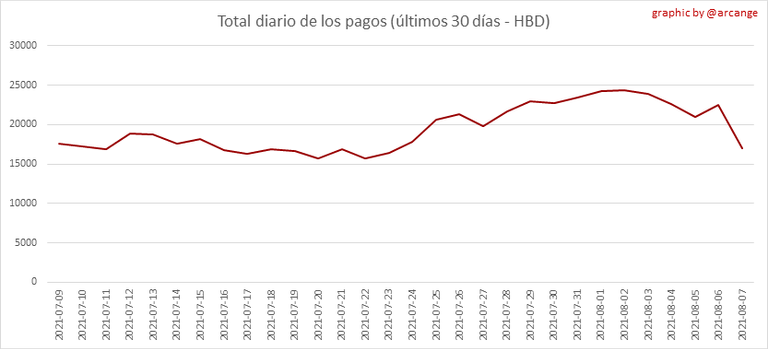 Estos gráficos muestran el total del pago distribuido (publicaciones y comentarios) de cada día.