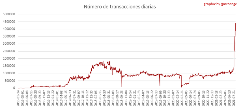 Este gráfico muestra la cantidad de transacciones diarias. Esto le da una idea de toda la actividad en la blockchain.