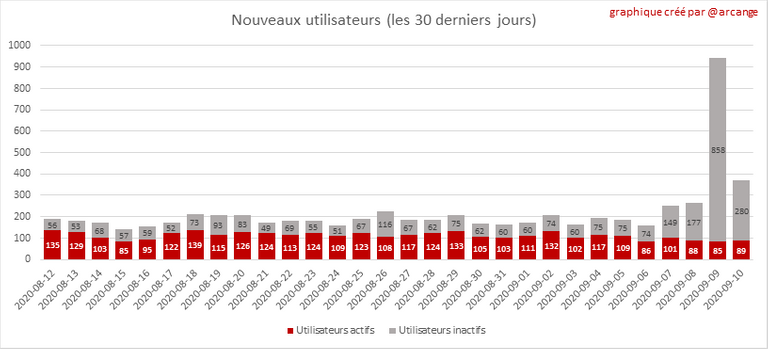 La partie grise de chaque colonne indique le nombre de comptes inactifs (ceux qui n'ont plus publié, commenté ou voté depuis 30 jours).