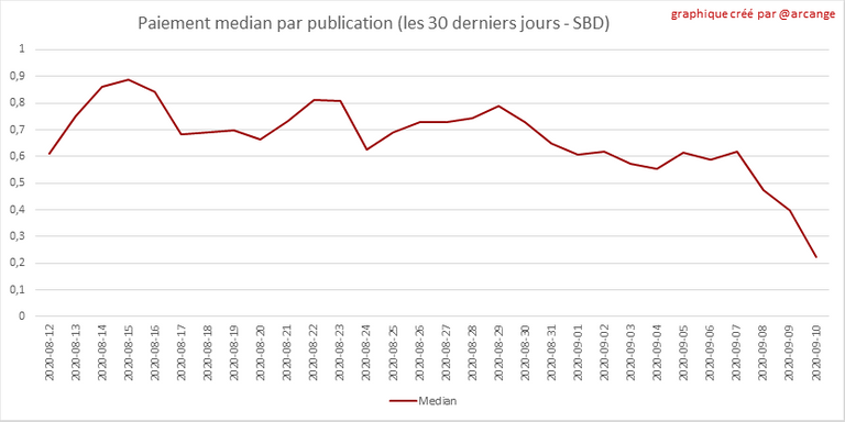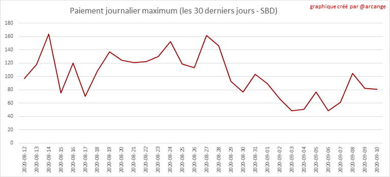 Ce graphique montrent la récompense maximale payée sur un message (ou un commentaire) au cours des 30 derniers jours.