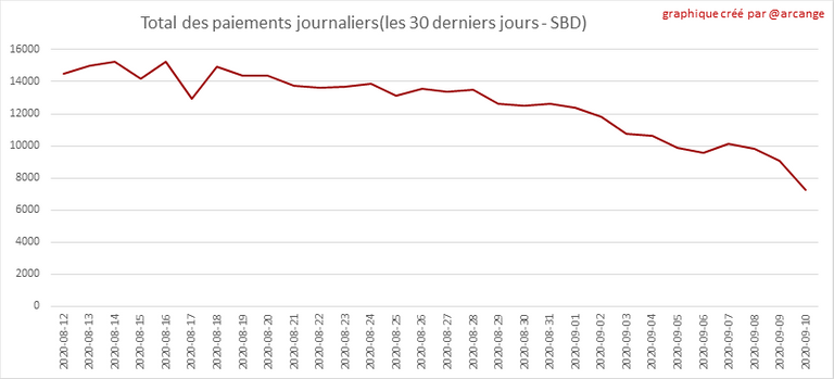 Ces graphiques montrent le total des paiements distribués (publications et commentaires) pour chaque jour.