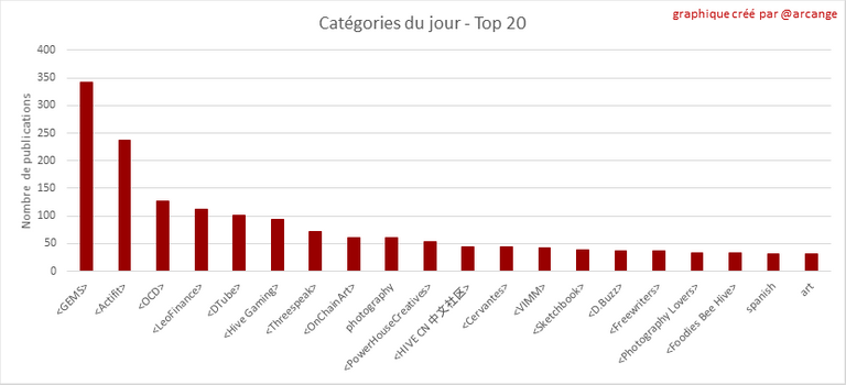 Ce graphique montre les catégories les plus utilisées pour les publications depuis la création de la blockchain et ce dernier jour.