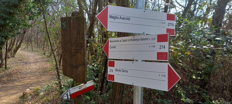 Introduction Today I started the exploration of first path of I arrived at the parking at 10.29 am. I parked little far from my targhet. To get to the climb i had to cross a part of the country. I took the convent of Calvary as point of reference. I think one day I will post about this place. The building thst can be seen at the top at the bottom. After about 20 minutes i arrived at the entrante of the park. After another 10 minutes of walk i arrived at the base of mount Delma. Spring has explosed in all its wonder. Finally shortly after i found the signs indicating the path. Looking at the numbers of the path i found myself blown away. There was no correspondence with those on the map. The place however was the right one. My initial goals was path 62. I decided to change my program and follow the unmarked parh: 277B The adventure has begun. On the way up i immediately notice two votive monuments. The first one to San Rocco The second one to the Madonna. I went back and took the path to start the climb. On my left, imposing, the convent of Calvary. It took me some time but i finally found the path. Walking uphill is different from walking on livello ground. The climb is quite demanding but not too much. I keep climbing. I'am starting to wonder who made me do it. The sun doesn't help. I take note: next time start earlier, put lighter clothes and take a backpack with bottle of water. The convent Calvario seen from above. In the end i arrived on the path that runs on the top of the montain Delma and I found new indications. I rested for a moment. Then I looked for a point to photograph the landscape. And than i take path 277A to go down towards Maglio Averoldi. Along the descent i enjoyed the scent of flowers, the silence and the song of the birds. At the end of the descent, Maglio Averoldi. This place also deserte a specific post. In this point also passes the ancient Valerian road. To do it all it would take two days of walking. I hope to succeed in August. The village of forge Averoldi From here I went back to the car along the road i have already done other times training on the flat. In the background the convent Calvario. Sono arrivato alla macchina alle 22:09 am The ride was enjoyable. I tracked it with GPS tracking app: Looking at the map what I have walked is path that is not marked. I'll make my own map. In the afternoon i did another 10k in plane to get to the 20k i had planned. That's all. Thank you for your attention and I hope you enjoy my program. I realized that I am surrounded by wonderful places to explore by walking. My project aims to discover these itineraries. I am alive and I am still here. -Gidien-